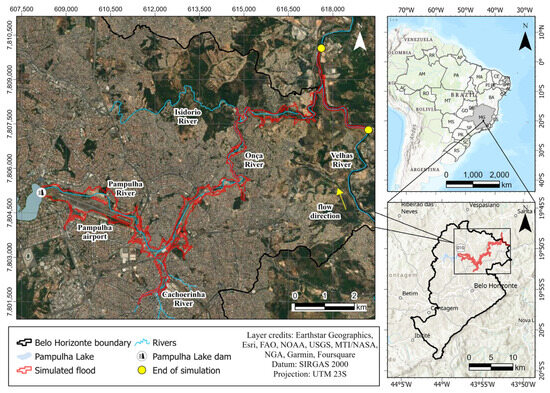 As a case study, the hypothetical failure of the Pampulha Lake Dam (PL.Dam) and its potential LOL were selected for different EWES approaches in its high-density downstream valley, situated in Belo Horizonte City, the State of Minas Gerais, Brazil (Figure 1). The area is highly populated, accounting for around 13,381 people potentially exposed to the dam-break flood risk.