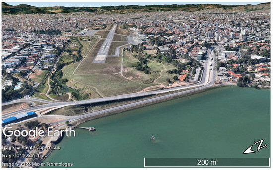 The maximum height of the dam is 20 m, with a crest at an elevation of 805 m. It has a width of 20 m and a length of 450 m. The spillway system consists of a linear overflow of the side channel type. Additionally, there is an auxiliary tulip overflow [54]. The contributing basin upstream of its reservoir spans an area of 98.3 km2 [54]. This basin exhibits a pronounced level of urbanisation, closely accompanied by a significant presence of sanitation-related issues. These challenges, in turn, contribute to water quality degradation within the Pampulha Lake [55].