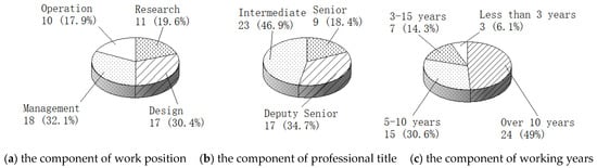 To ensure the reliability of the survey results, we introduced an expert-level coefficient to adjust the scores, considering factors such as work positions, professional titles, and years of experience of the 49 scoring experts. The correction coefficient values are provided in Table 5, and the composition of the expert group is illustrated in Figure 2.
