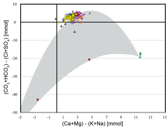 - Chadha, D.K. A proposed new diagram for geochemical classification of natural waters and interpretation of chemical data. Hydrog. J. 1990, 7, 431–439. [Google Scholar] [CrossRef]