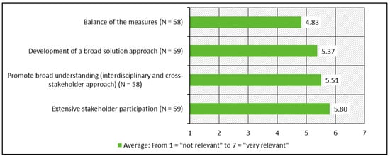 However, in order to achieve jointly supported results within the setting of such a dialogue process, all relevant stakeholders must be prepared to participate, i.e., the pressure to act must have been recognized in principle. In addition, good general conditions must be created for the process and various principles for success must be observed. Following the Harvard concept [] and analyses of stakeholder dialogues in the environmental sector based on it [], the following aspects in particular were taken into account: