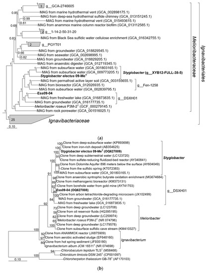 - Podosokorskaya, O.A.; Kadnikov, V.V.; Gavrilov, S.N.; Mardanov, A.V.; Merkel, A.Y.; Karnachuk, O.V.; Ravin, N.V.; Bonch-Osmolovskaya, E.A.; Kublanov, I.V. Characterization of Melioribacter roseus gen. nov., sp. nov., a novel facultatively anaerobic thermophilic cellulolytic bacterium from the class Ignavibacteria, and a proposal of a novel bacterial phylum Ignavibacteriae. Environ. Microbiol. 2013, 15, 1759–1771. [Google Scholar] [CrossRef] [PubMed]