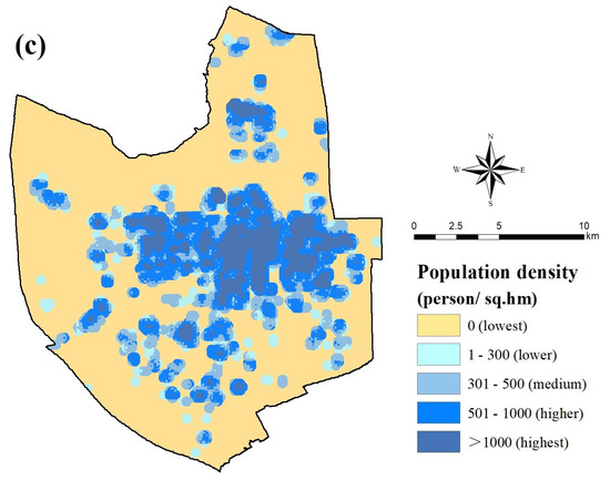 In the formula, POP is the total population in the region (person); S is the region’s total area (hm2).