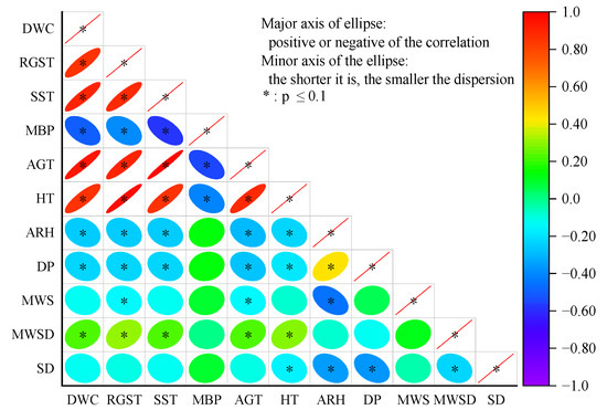 > 0 means positive correlation; means negative correlation. The closer the absolute value of is to 1, the greater degree of linear correlation between variables X and Y, the closer the absolute value of is to 0, the less linear correlation between X and Y. if 0 < < 1, indicating that X, Y are related; if ≥ 0.8. It is regarded as a very strong correlation; if 0.6 < < 0.8, it is regarded as strong correlation; if 0.2 < < 0.6, it is regarded as moderate correlation; when < 0.2, it is weak correlation [25].