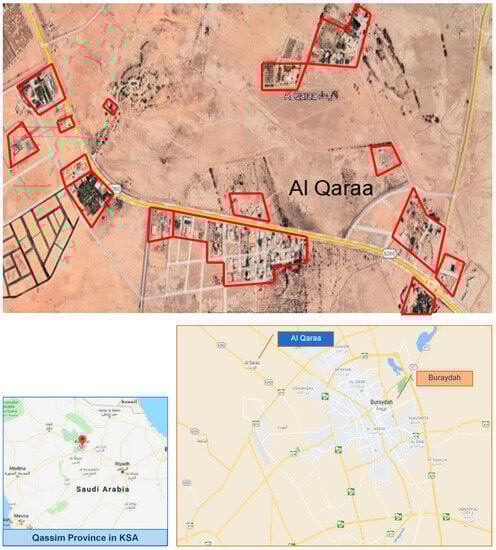 Study area showing the location of Alqaraa village in the Al-Qassim region, KSA.