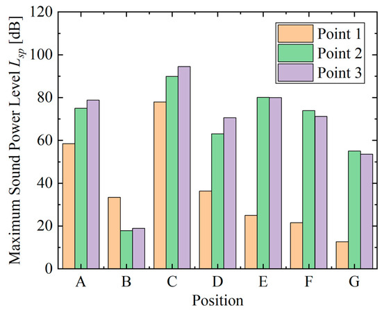 Comparison of the maximum sound power levels at different positions.