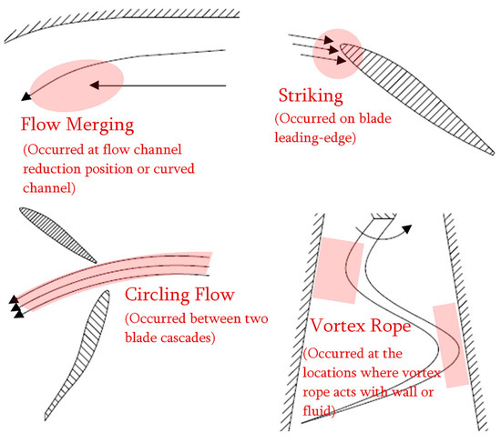 The schematic map of the locations where high flow-induced noise occurs.
