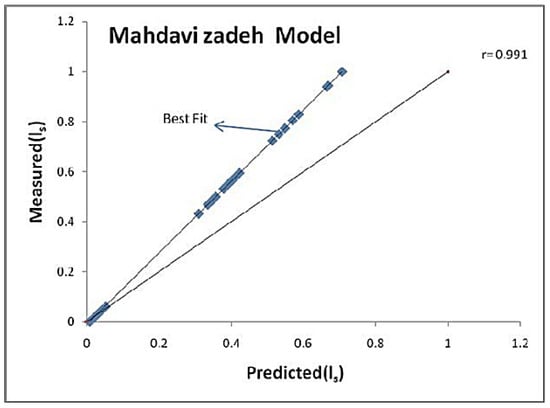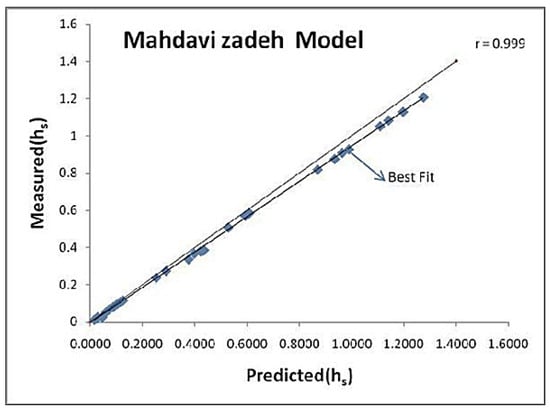 Mahdavizadeh et al.’s [9] laboratory values were used to model the neural network, and the the DOT relationship was investigated; next, by considering the structure of one neuron in the hidden layer, a comparison was made between the DOT relationship and the modified DOT relationship, according to Mahdavizadeh et al. [9]. It was observed that modified DOT had a higher correlation and a lower MSE for all dimensions of the scour hole in comparison with the DOT relationship according to data in Table 27 and Table 28.