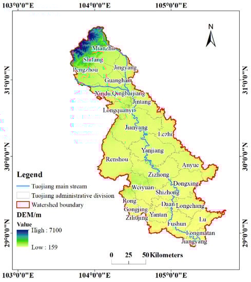 - Xiao, Y.T.; Chen, S.; Fan, M. Temporally and Spatially varied characteristics of pollution load in Tuojiang River Basin. Acta Sci. Circumstantiae 2021, 41, 1981–1995. (In Chinese) [Google Scholar]