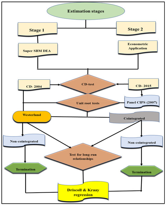 The study applies the Driscoll and Kraay (DK) [53] method to estimate long-term impacts. This approach seems productive for analyzing panel data exhibiting geographical or temporal connections. DK is effective when there is a noticed spatial or temporal correlation within the dataset. Spatial dependency refers to the phenomenon where observations close to each other in space are more likely to exhibit correlation. On the other hand, temporal dependence refers to the concept that observations close to each other in time are more likely to display correlation. Considering panel data that potentially violates the assumption of independence can be beneficial. Incorporating spatial or temporal correlation can enhance the accuracy and efficiency of parameter estimates [54]. The above methods exhibit high flexibility and can be tailored to diverse datasets and correlation patterns.