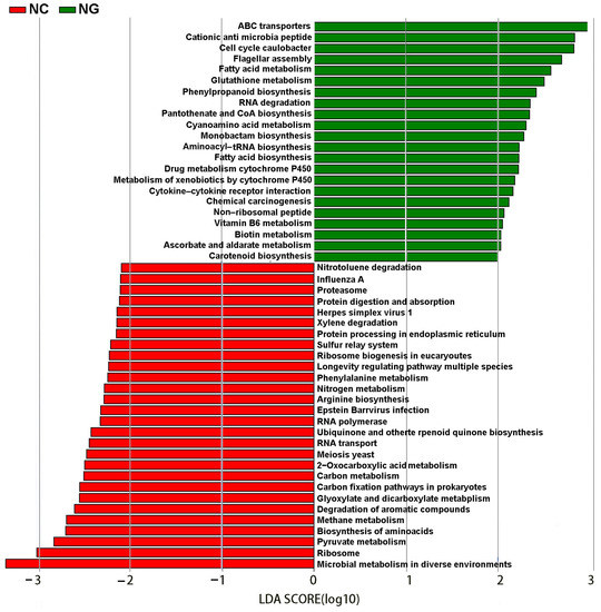Classification level discriminant analysis (LDA) of the KEGG pathway by LEfSe analysis.