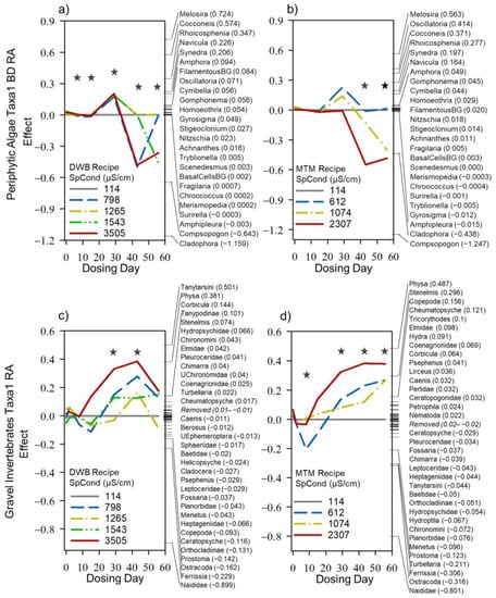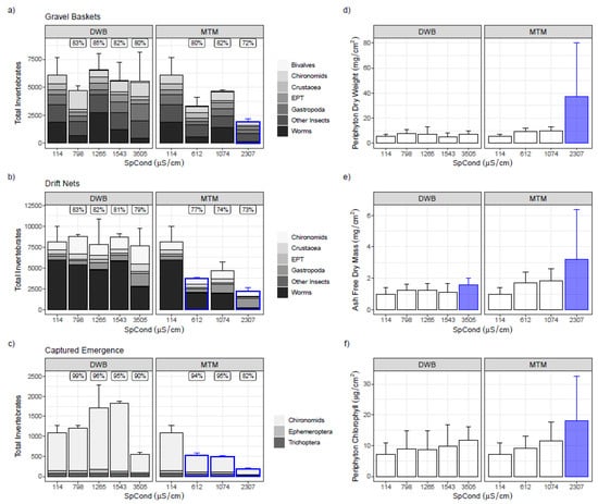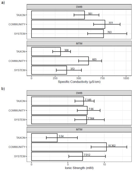 - Clements, W.H.; Kotalik, C. Effects of major ions on natural benthic communities: An experimental assessment of the US Environmental Protection Agency aquatic life benchmark for conductivity. Freshw. Sci. 2016, 35, 126–138. [Google Scholar] [CrossRef]
