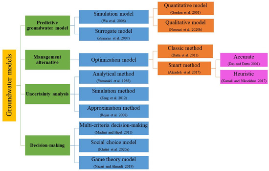 Categorizing the groundwater management models from different aspects [8,13,16,17,18,19,20,21].