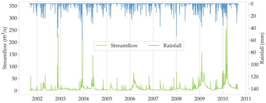Figure 2. Ait Ouchen streamflow and rainfall data used in this study (1 September 2001–31 August 2010).