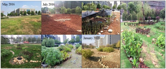 Based on the design layout of the rain garden, a variety of plant communities were set up in the rain garden and the surroundings. Plants were an important part for the rain garden, which could retain water and certain pollutants. Native plants were the best choice in most cases since they were adapted for local environmental conditions and required less care. Additionally, plants should be able to tolerate periodic inundation. The principles of economic benefit, local conditions and diversity were followed and major plant species were chosen, such as Canna generalis, Lythrumsalicaria, Cyperus alternifolius, Irispseudacorus and Miscanthus sinensiswere [].