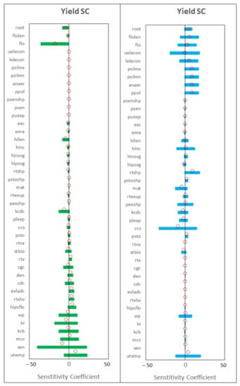 - Lu, Y.; Chibarabada, T.P.; McCabe, M.F.; De Lannoy, G.J.M.; Sheffield, J. Global sensitivity analysis of crop yield and transpiration from the FAO-AquaCrop model for dryland environments. Field Crop Res. 2021, 269, 108182. [Google Scholar] [CrossRef]