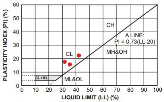 - ASTM D4318; Standard Test Methods for Liquid Limit, Plastic Limit, and Plasticity Index of Soils. ASTM International: West Conshohocken, PA, USA, 2005.