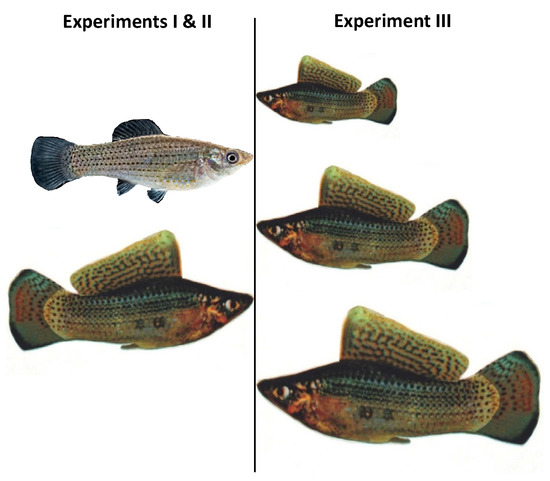 - MacLaren, R.D.; Fontaine, A. Incongruence between the sexes in preferences for body and dorsal fin size in Xiphophorus variatus. Behav. Proc. 2013, 92, 99–106. [Google Scholar] [CrossRef]