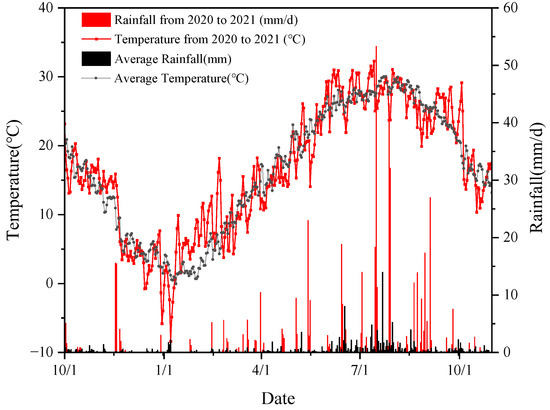 Meteorological data from Bozhou station were obtained from the China Meteorological Data Network (https://data.cma.cn/ (accessed on 15 December 2021)). The location of this station is shown in Figure 1a. The meteorological data in this paper include temperature, wind speed, actual water vapor pressure, saturated water vapor pressure, and so on, from April 2020 to June 2021.