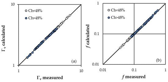 for Ch ≥ 48%. These equations are both characterized by a coefficient of determination of 0.999. Figure 2a shows the comparison between the Γv values obtained by Equations (5) and (6), with those calculated by Equations (8a) and (8b).