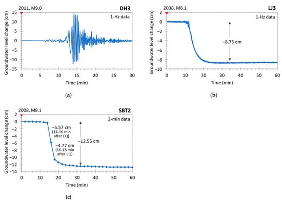 3.1. Temporal Variation of Coseismic Changes in Groundwater Level