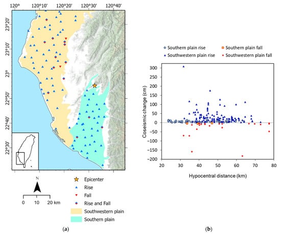 3.2. Spatial Distribution of Coseismic Changes
