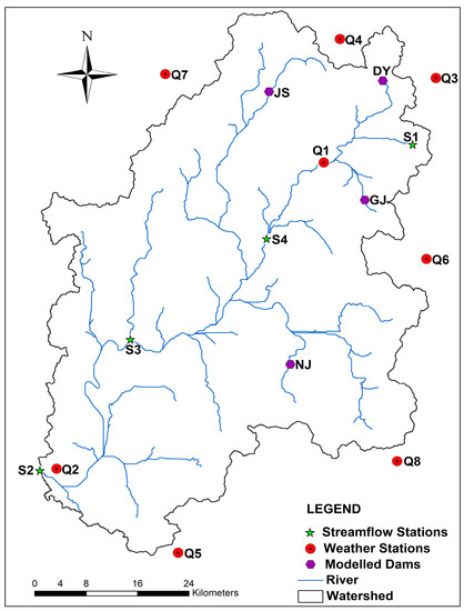 Hydrological models are extensively employed in water resource planning and management research for simulating hydrological processes owing to their cost-effectiveness and efficient time utilization [1,2]. Under a variety of input watershed conditions, such as climatic water availability, and distribution scenarios using hydrological simulation, models can reliably estimate water yield and availability in a basin [3]. Calibration is important for building a consistent and representative river basin-scale model. A common calibration strategy is calibrating a hydrological model at the watershed outlet [4]. This calibration technique is mostly effective for small watersheds. Accordingly, numerous scholars have proposed the use of multi-site calibration to calibrate complex hydrological models of bigger watersheds to achieve significantly enhanced model performance, as this approach effectively represents the spatial variability within the watersheds [5,6,7]. Moreover, relative to calibrating a single-site, multi-site calibration enables more parameter flexibility [8].