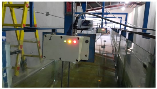 In the wavemaker tank, the resistance wave probe is used to measure wave height. As has been shown in Figure 5, the wave probe consists of two bars 50 cm in length and 0.5 mm in diameter. Sensors are located where the amount of water height is required and measure the surface water oscillation with a precision of millimeters. These instruments were connected in series with a 4-string cable, and the first probe was connected to the data logger of the wave tank.