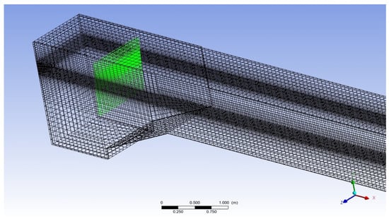 To accurately obtain the wave height, a fine mesh is used at the border of two fluid phases, i.e., water and air, in both two-dimensional and three-dimensional numerical-wave tanks. Samples of 2-D and 3-D mesh employed in the numerical simulation are shown in Figure 7 and Figure 8, respectively.