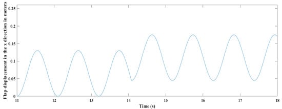 Flap displacement in the x direction in meters.