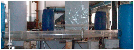 Water was supplied from the municipal potable mains and controlled by a valve. The outlet flow (from the downstream barrel) was directly drained to final disposal without circulation to avoid the accumulated build up of the (background) concentration of the tracer. The discharge through the pipe was measured using a calibrated flow meter located upstream. The axial fluid velocity was expected to be repressed from the centerline, but it was slightly increased adjacent to the pipe wall [29].