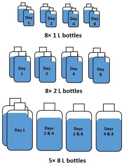 Experimental design, showing all bottles, corresponding volumes, and incubation periods for each bottle.