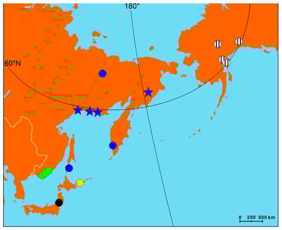For the southern part of the Russian Far East, there is abundant information on B. beringiana distribution, morphology, and DNA sequences, while much less is known on the northern part of the distribution [7,8,9,13,14,15,19,20,21,22,23].