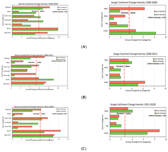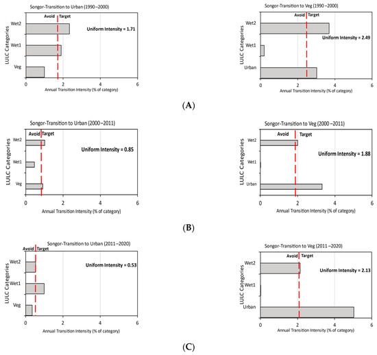 - Aldwaik, S.Z.; Pontius, R.G., Jr. Intensity analysis to unify measurements of size and stationarity of land changes by interval, category, and transition. Landsc. Urban Plan. 2012, 106, 103–114. [Google Scholar] [CrossRef]