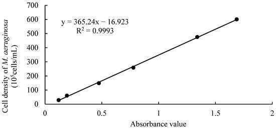 Standard curve of cell density and absorbance of M. aeruginosa.
