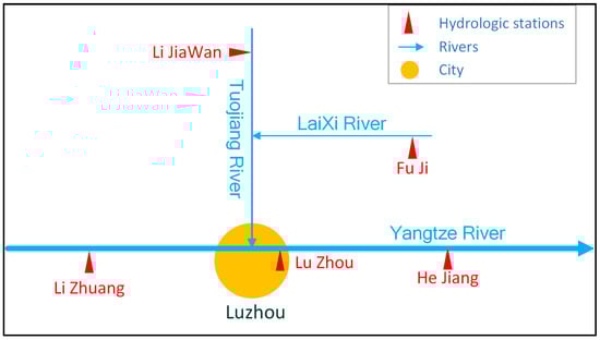 To gain a comprehensive understanding of the spatial and temporal distribution of rainfall in Luzhou, rainfall data from various stations were selected for this study. These included Luzhou Station, Lizhuang, and Jiang’an upstream of Luzhou on the Yangtze River. As shown in Figure 3,Hejiang downstream of Luzhou, Fushun on the Tuojiang River upstream of Luzhou, and Fujihuo on the Laixi River.