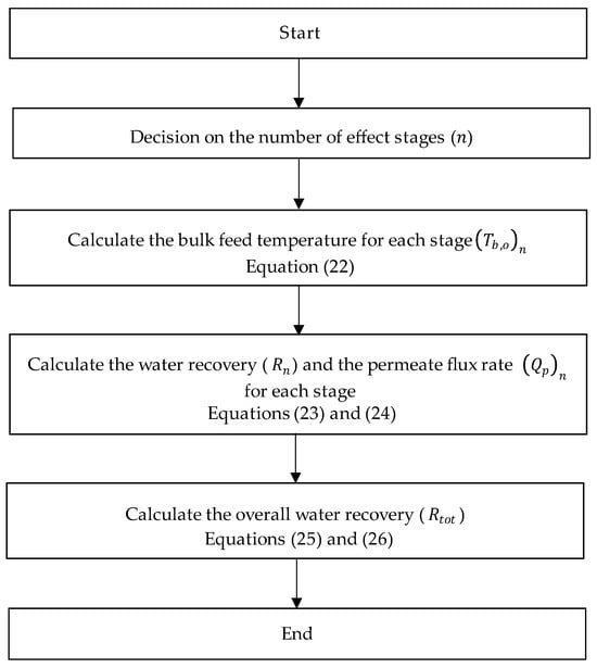 Assuming negligible convection heat loss to the environment, the bulk feed inlet temperature for each successive stage is determined using the energy balance from the predecessor stage [61].