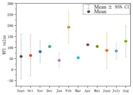 The monthly WPI values of the Pi River. CI: confidence interval.