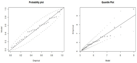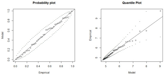 Goodness of fit test at a threshold of 5.12 (PP plot and QQ plot).