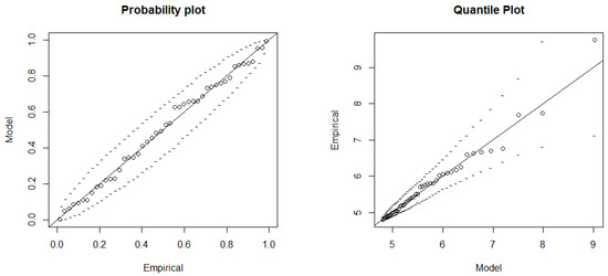 Goodness of fit test at a threshold of 4.80 (PP plot and QQ plot).