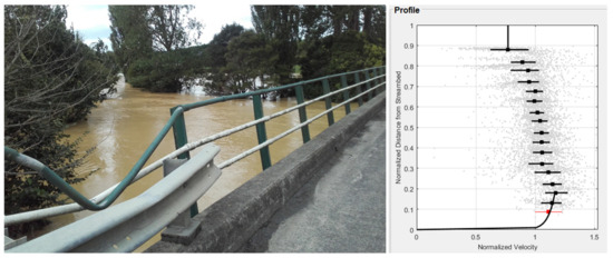 - Johnson, E.D.; Cowen, E.A. Remote determination of the velocity index and mean streamwise velocity profiles. Water Resour. Res. 2017, 53, 7521–7535. [Google Scholar] [CrossRef]