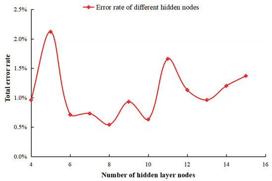 - Input the normalized samples into the network, train the BP artificial neural network by adjusting the network weights, and calculate the network output and total error E.
