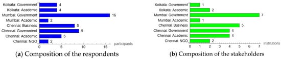 The following supporting information can be downloaded from https://www.mdpi.com/article/10.3390/w15213719/s1: Excel file SI_CodedData.xlsx; Word file SI_DetailedResultsTable.docx. The Excel file coded the outcomes of the surveys from workshops in Chennai, Kolkata and Mumbai. As sensible data related to political views were processed, both the respondents and the organizations were anonymized (some sent only one respondent). The Word file extends Table A1 and Table A2.