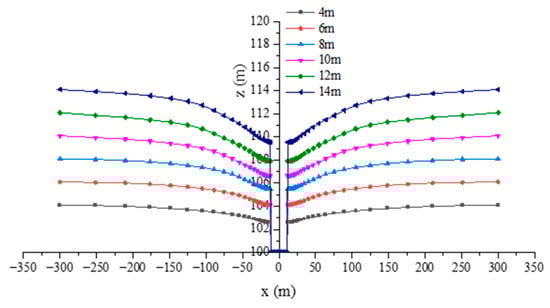 - The calculation results are compared with the measured water level measurements. The average error of the water level drop in the pit and precipitation well under the suspended water-stop curtain condition is 11.7%, indicating that the established numerical model can meet the calculation requirements.