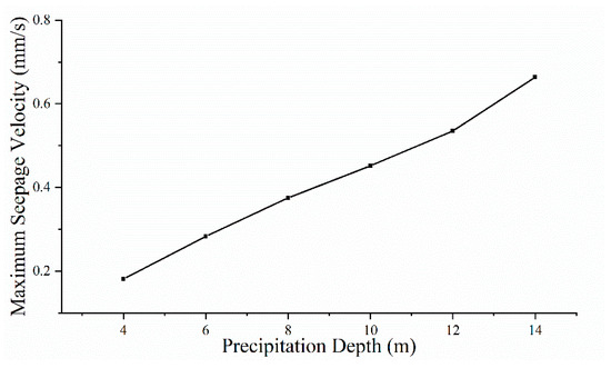 | Precipitation Depth (m) | Projected Area (m2) | Maximum Seepage Flow Velocity (mm/s) | |||