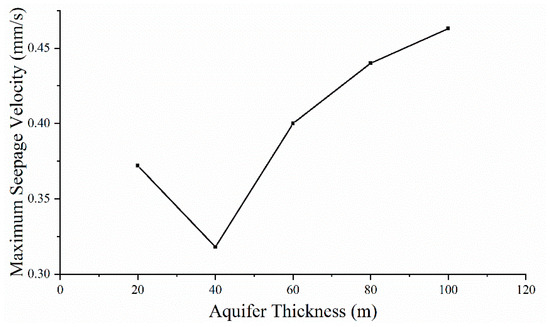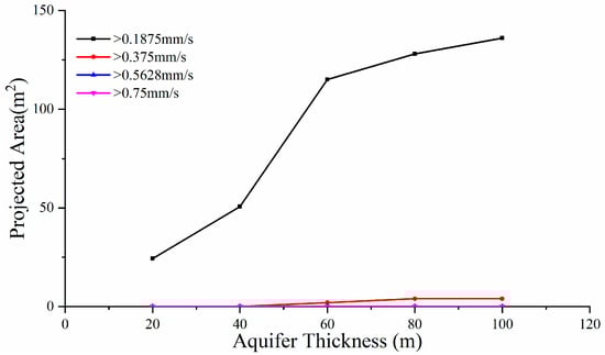 | Aquifer Thickness (m) | Projected Area (m2) | Maximum Seepage Flow Velocity (mm/s) | |||