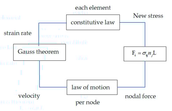 The FLAC method is used to obtain the stress and deformation values of each element (or node) on the slope at each time step by iterative solution, and the whole slope deformation and failure process is simulated. The Lagrangian difference method calculation cycle is shown in Figure 9.