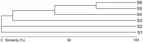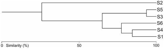 Grouping of Hydrachnidia communities occurring at individual sites. S1–S6—study sites.