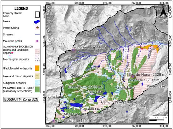 - Forno, M.G.; Gattiglio, M.; Ghignone, S.; De Luca, D.A.; Santillan Quiroga, L.M. Geological Significance of the Perrot Spring in Mont Avic Natural Park (NW Alps). Water 2023, 15, 3042. [Google Scholar] [CrossRef]