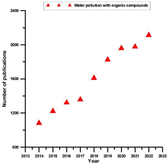 Water pollution with organic compounds is an incredibly popular subject in research. Figure 1 shows the number of publications on the compounds under discussion that have been listed in the Scopus database (www.scopus.com) over the last ten years. It shows an increasing trend which indicates the significance of water pollution with organic compounds.